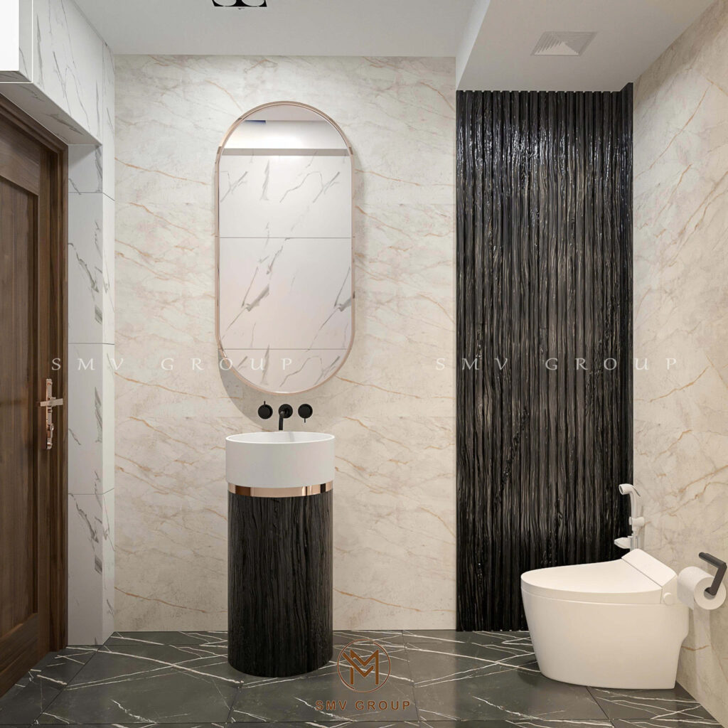 - Đá marble tự nhiên ốp mảng tường trung tâm tạo hiệu ứng đối xứng